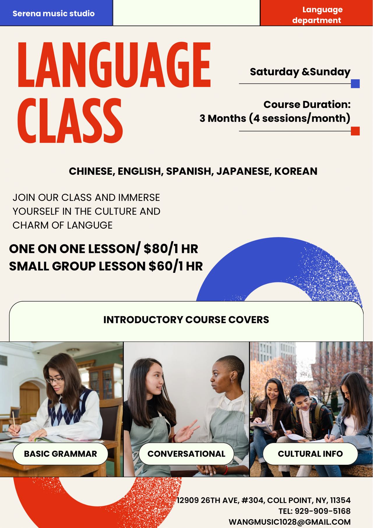 Ms. Wang has abundant music teaching experience in New York, She has been teaching vocal and piano for five years and her students all passed the ABRSM piano 1-6 levels and NYSSMA music exam. She conducted her music studio successfully and has strongly professional training experience. In addition, she is being patient and encourage to accompany with students to get their improvement these years.